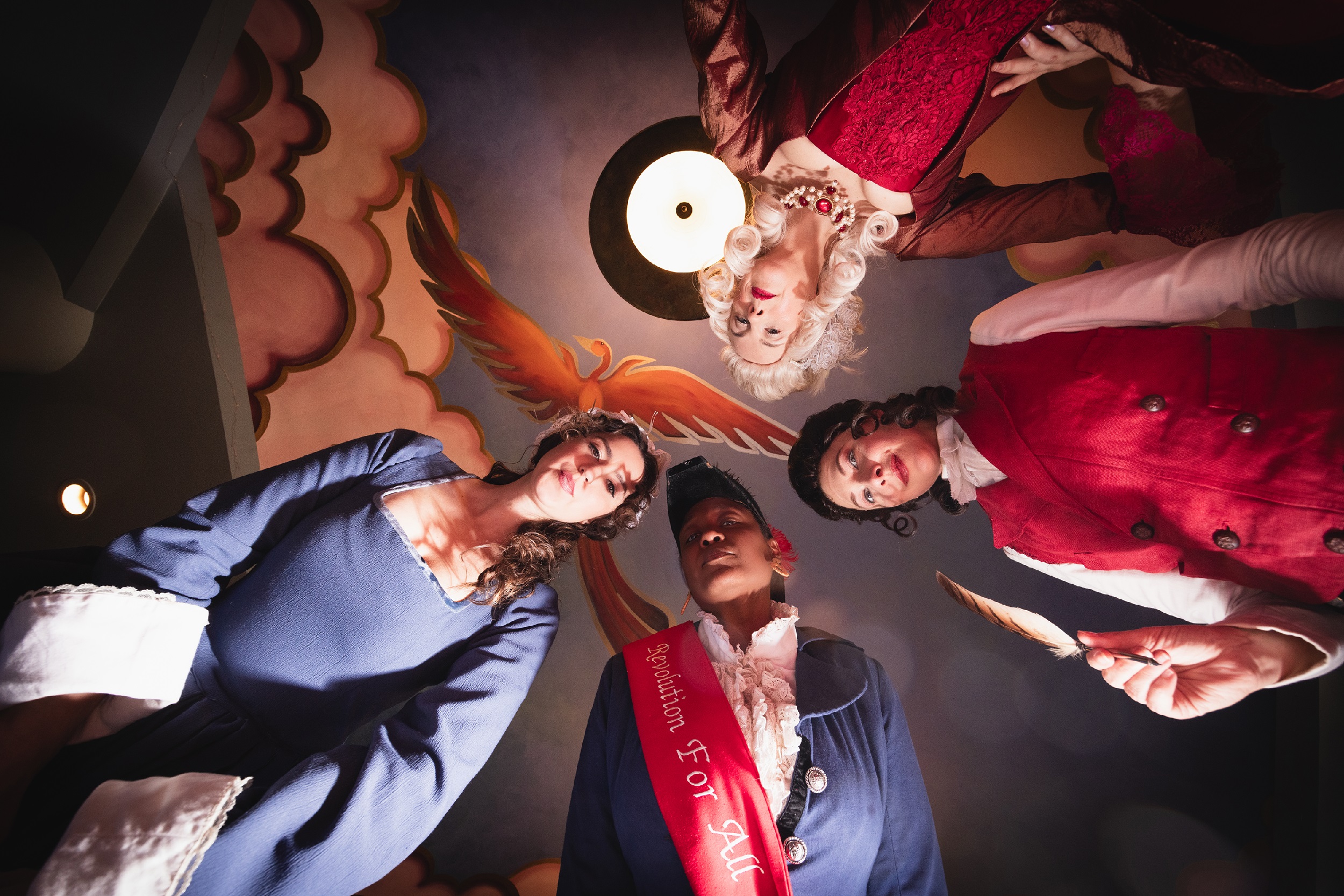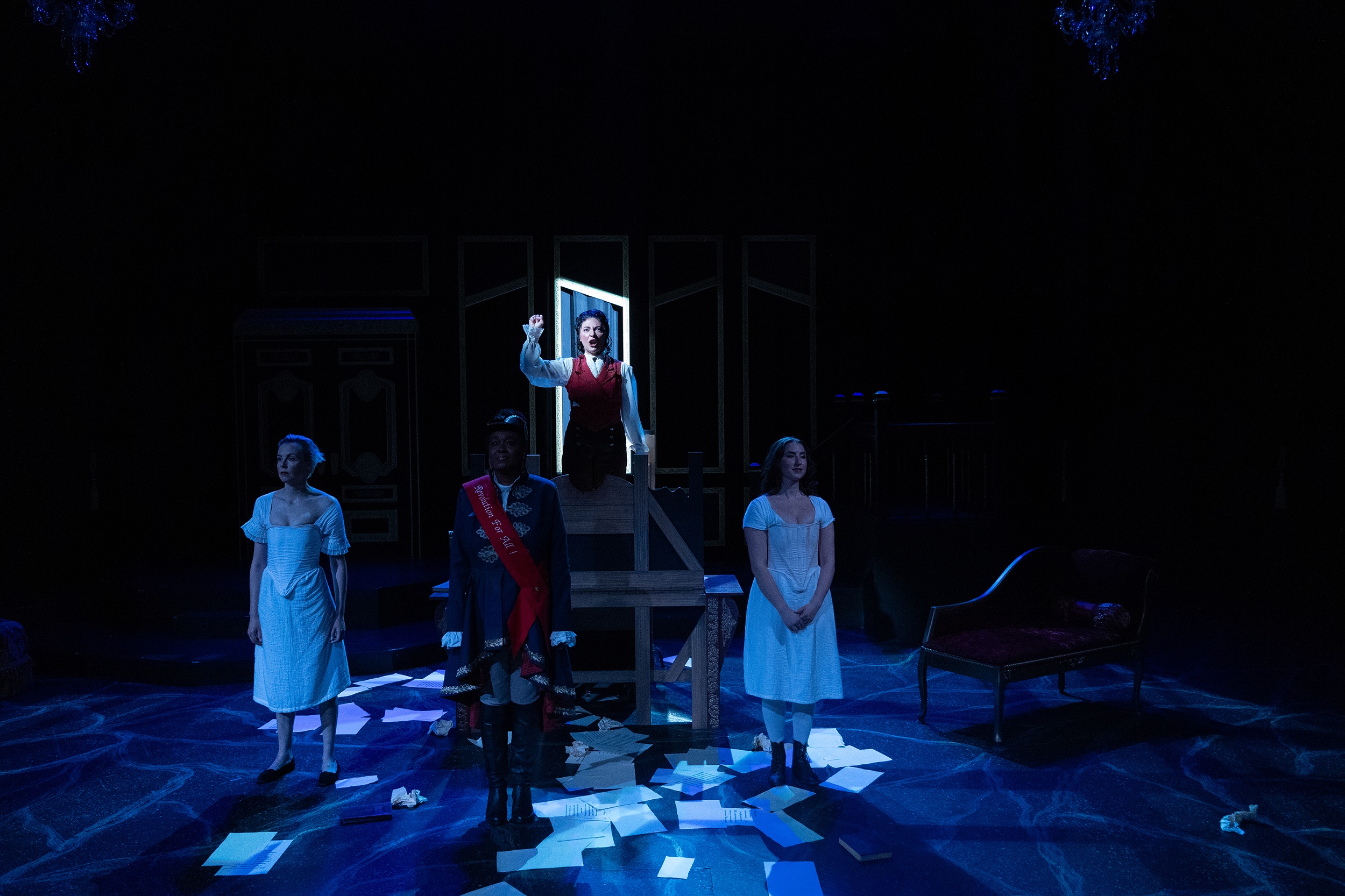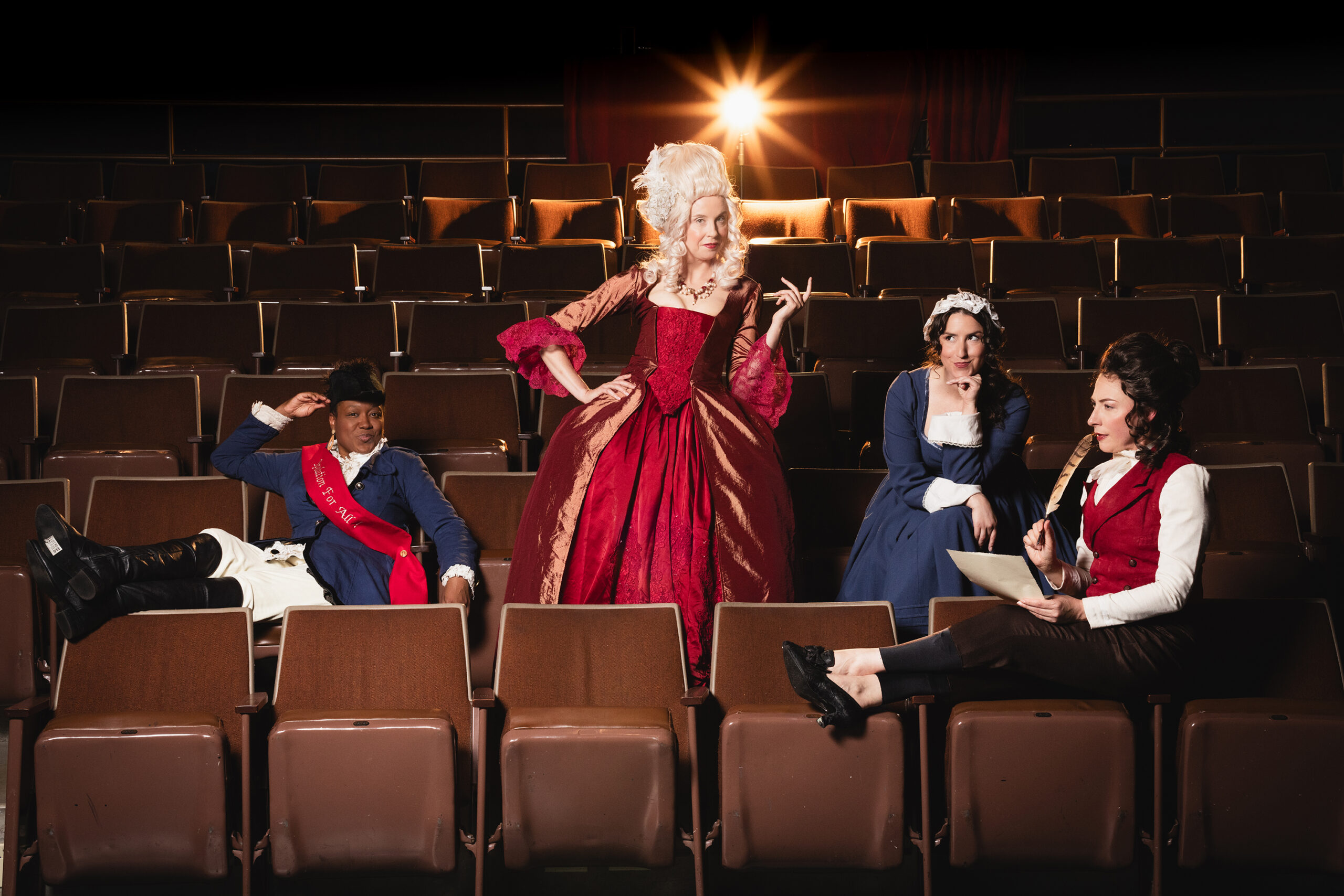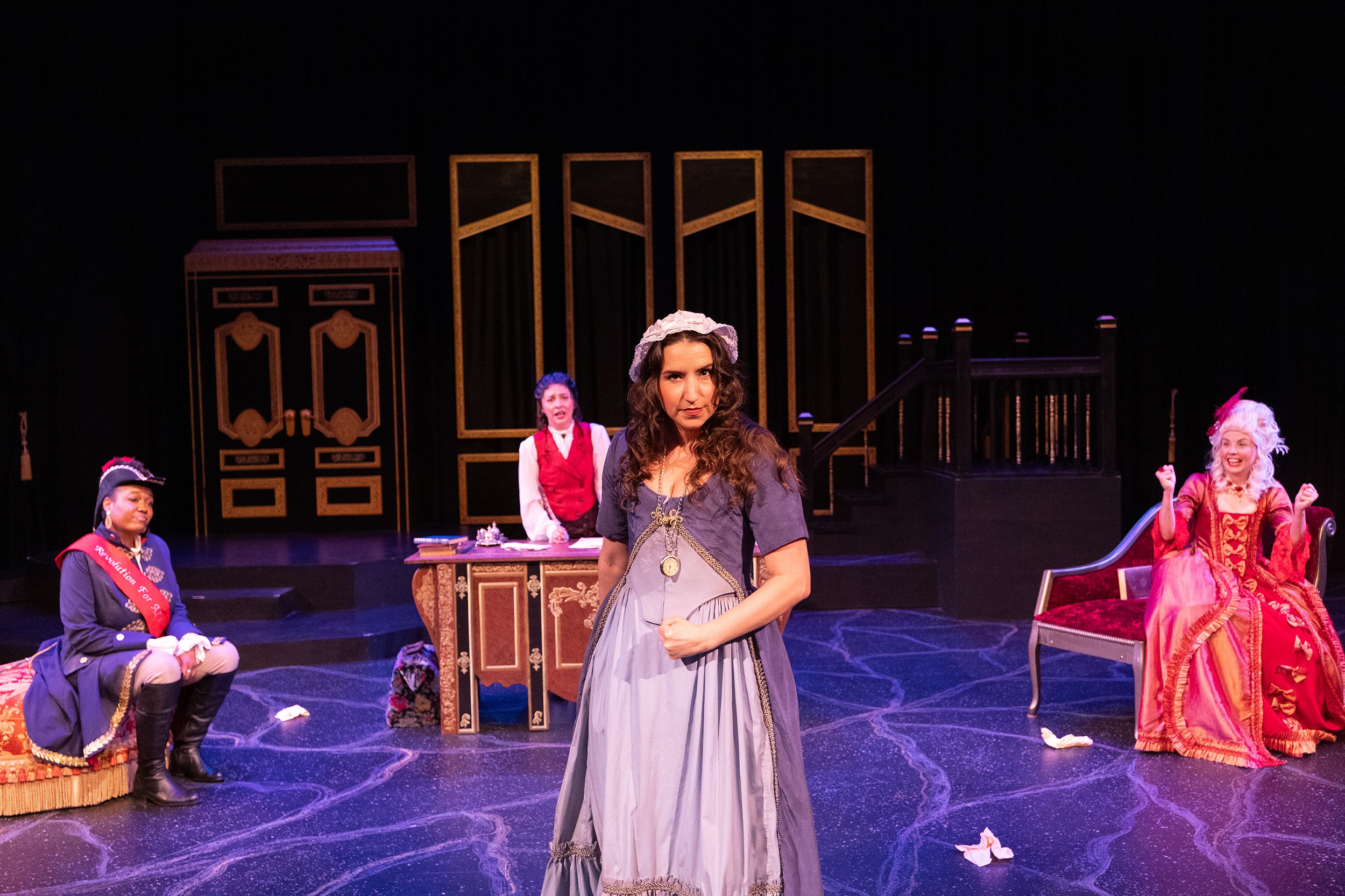 The Revolutionists is a new play about four very real women who lived boldly in France during the French Revolution’s Reign of Terror. Playwright Olympe De Gouges, assassin Charlotte Corday, former queen Marie Antoinette, and Haitian rebel Marianne Angelle hang out, murder Marat, lose their heads and try to beat back the extremist insanity in the Paris of 1793. What was a hopeful revolution for the people is now sinking into hyper-violent hypocritical male rhetoric. However will modern audiences relate? This grand and dream-tweaked comedy is about violence and legacy, art and activism, feminism and terrorism, compatriots and chosen sisters, and how we actually go about changing the world.