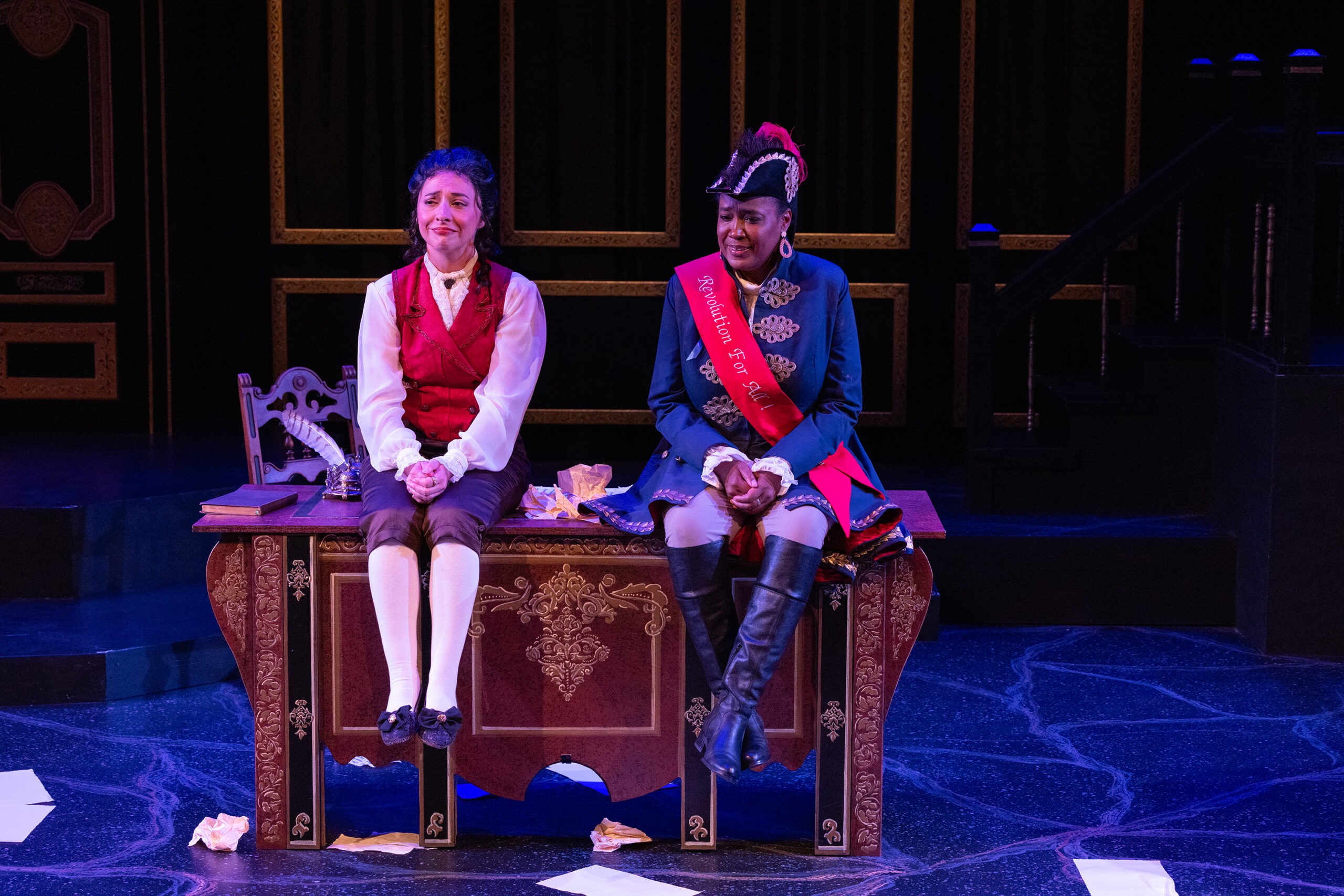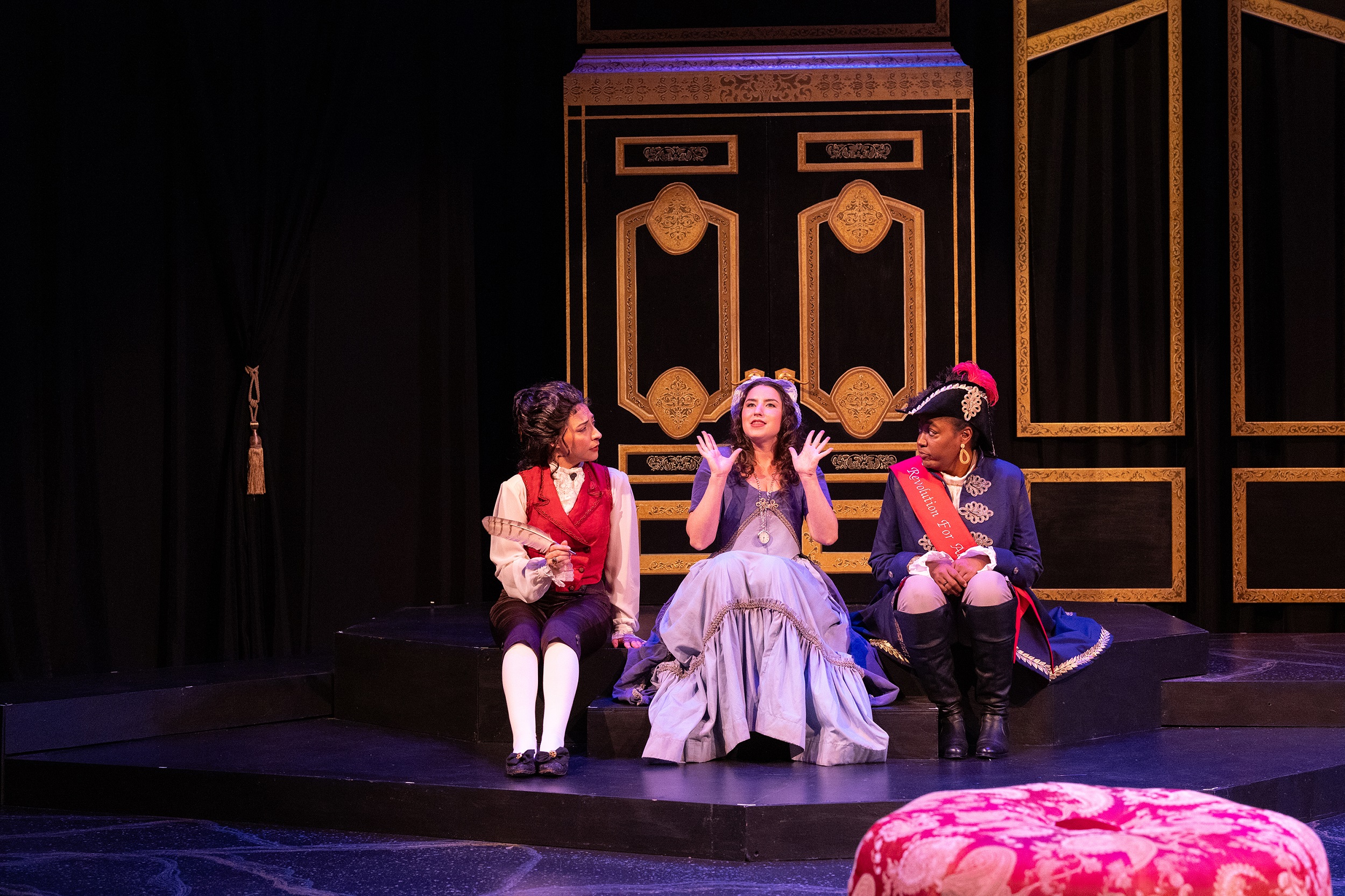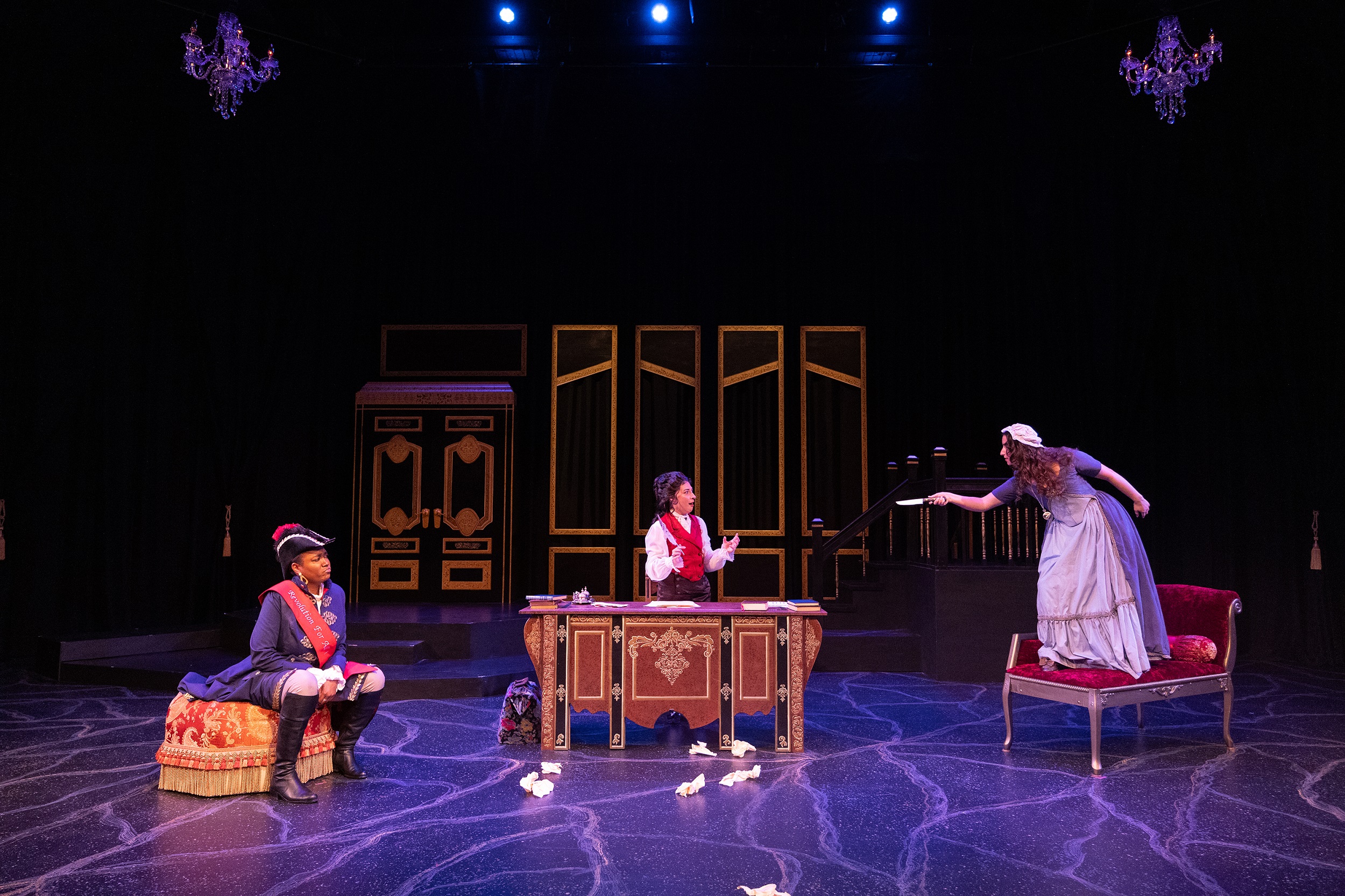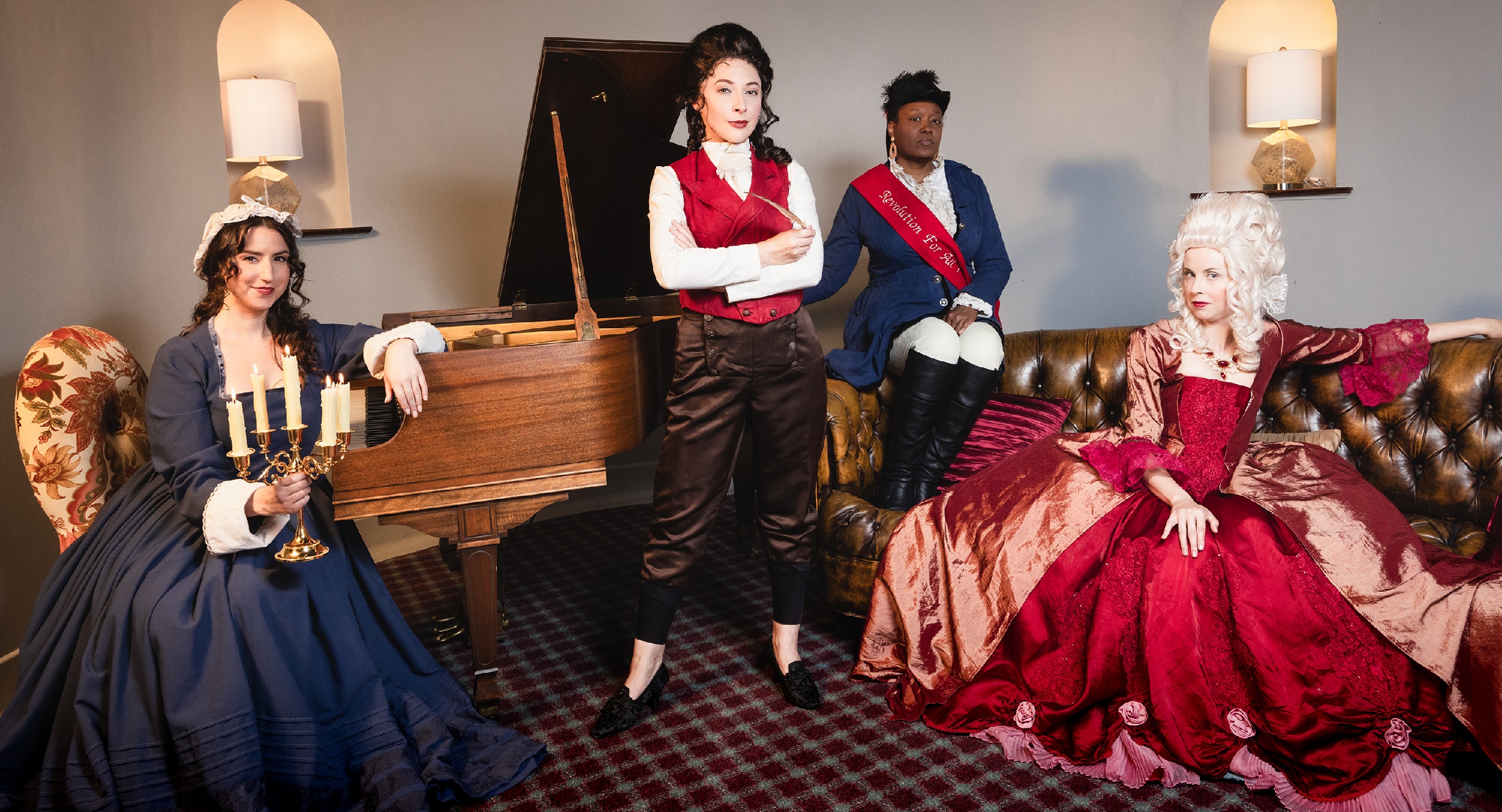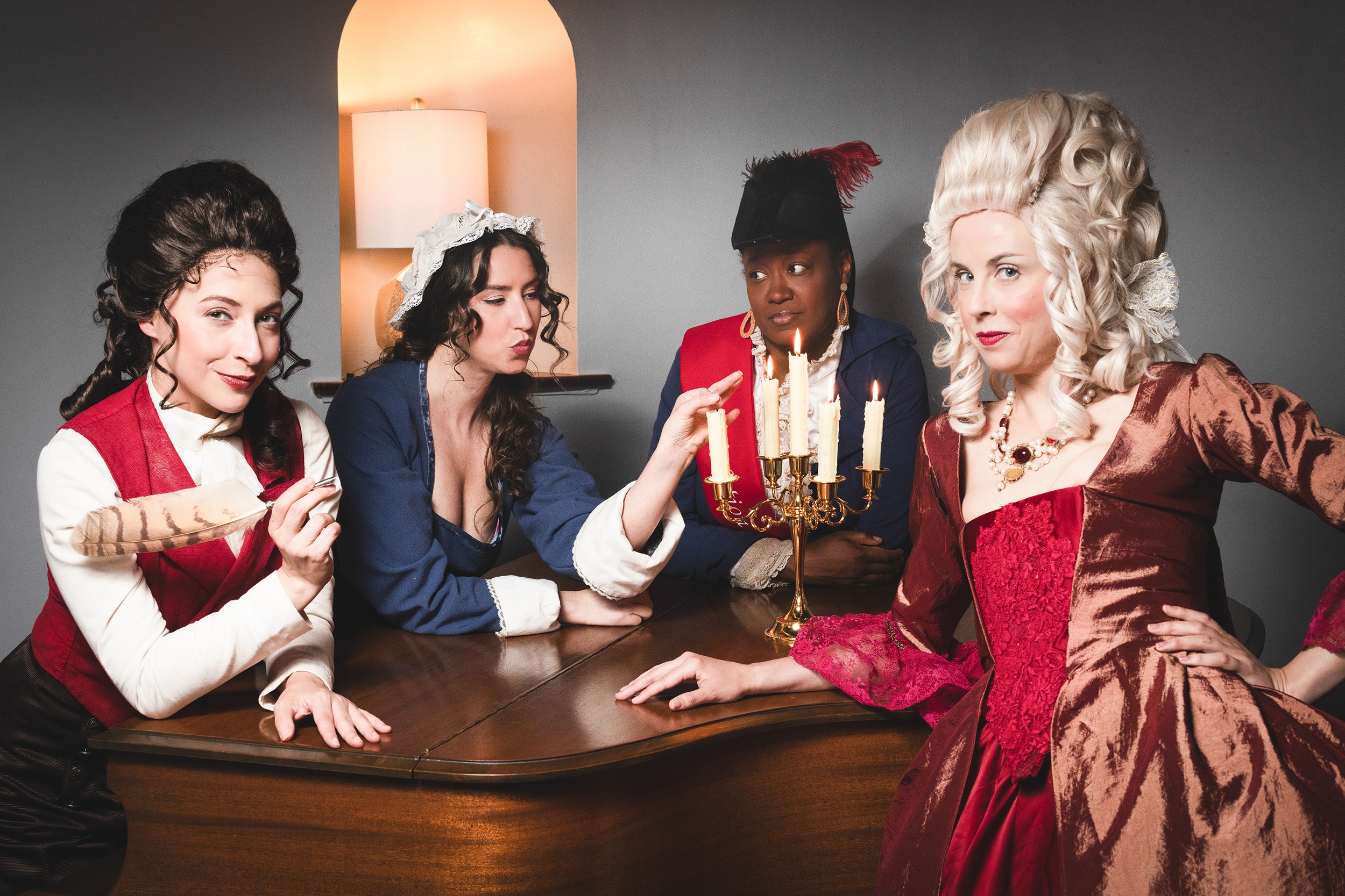 The Revolutionists is a new play about four very real women who lived boldly in France during the French Revolution’s Reign of Terror. Playwright Olympe De Gouges, assassin Charlotte Corday, former queen Marie Antoinette, and Haitian rebel Marianne Angelle hang out, murder Marat, lose their heads and try to beat back the extremist insanity in the Paris of 1793. What was a hopeful revolution for the people is now sinking into hyper-violent hypocritical male rhetoric. However will modern audiences relate? This grand and dream-tweaked comedy is about violence and legacy, art and activism, feminism and terrorism, compatriots and chosen sisters, and how we actually go about changing the world.