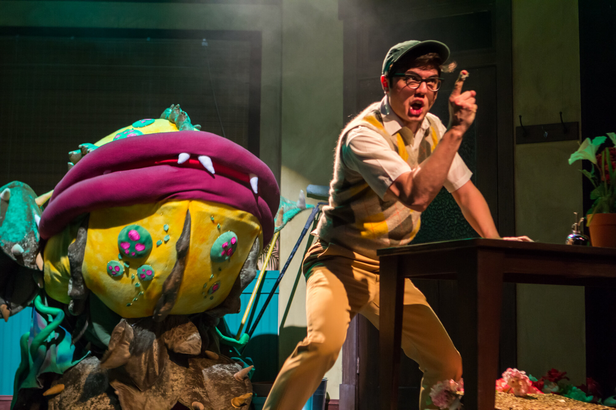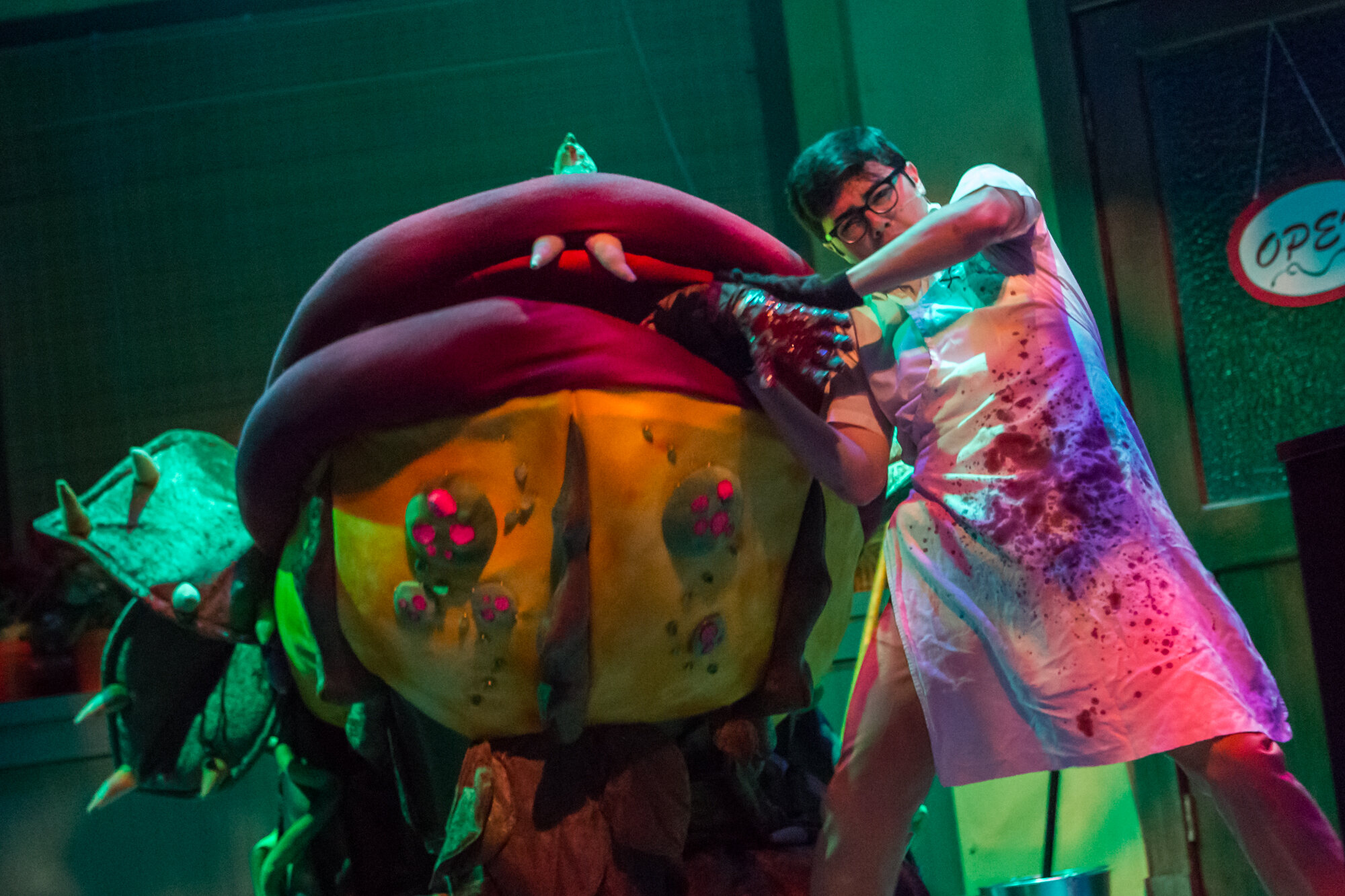 Seymour Krelborn is a meek floral shop assistant who happens upon a strange plant, which he affectionately names “Audrey II” after his crush at the shop. Little does he know that this unusual plant will develop a soulful R&B voice and an unquenchable thirst for human blood. As it rapidly grows, the carnivorous plant promises fame and fortune to Seymour, as long as he continues providing blood. Just when it’s too late, Seymour discovers Audrey II’s extra- terrestrial origins and his true drive for world-domination.
