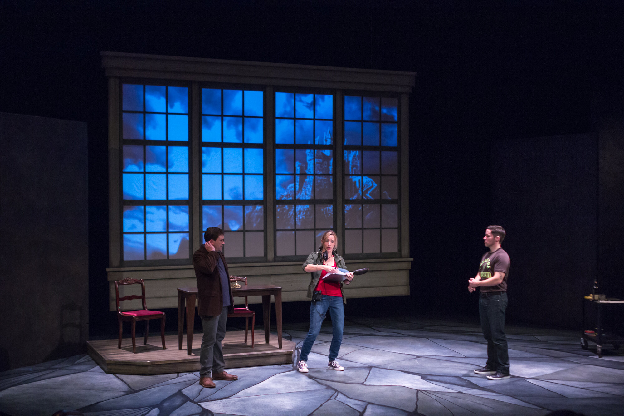 Charged with running the understudy rehearsal for a Broadway production of a recently-discovered Kafka play, Roxanne finds her professional and personal life colliding. Harry, a struggling actor (and her ex-fiancé) has been cast as the understudy to Jake, a mid-tier action movie star yearning for legitimacy. Harry and Jake grapple to either eliminate each other or find common ground. Roxanne struggles to maintain control of the rehearsal, despite a stoned tech assistant (or is she actually malevolent?) and her own careening feelings about both actors and her past.